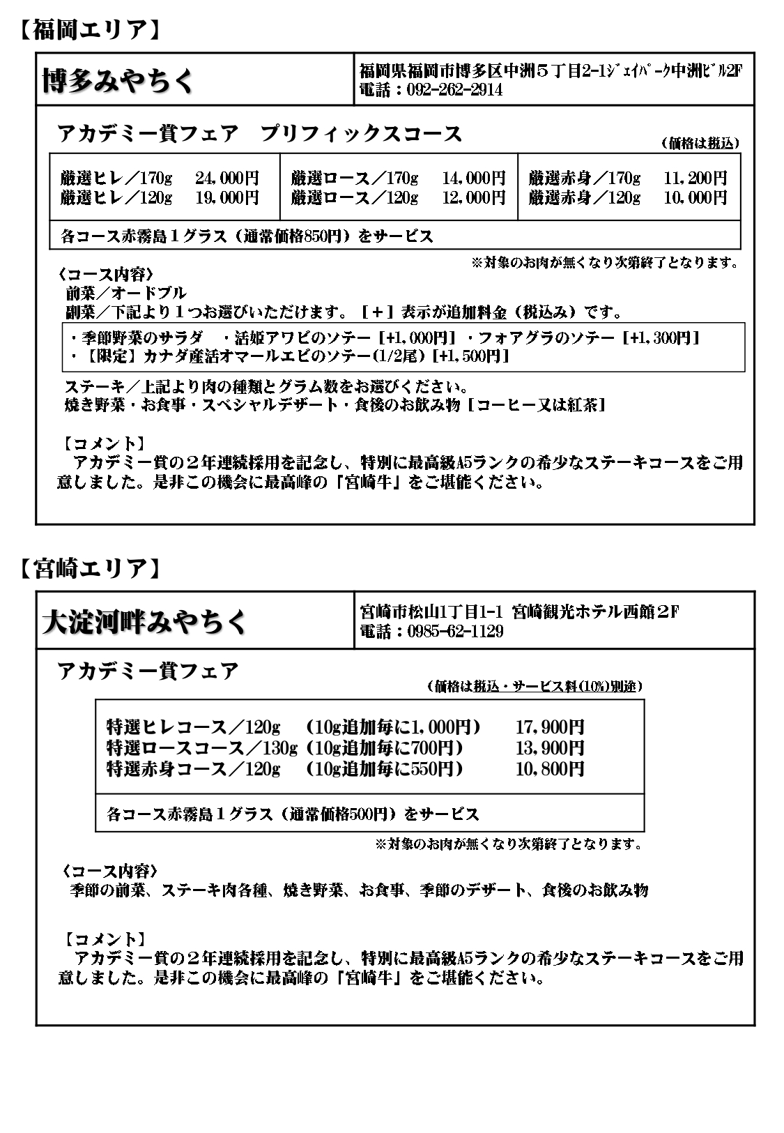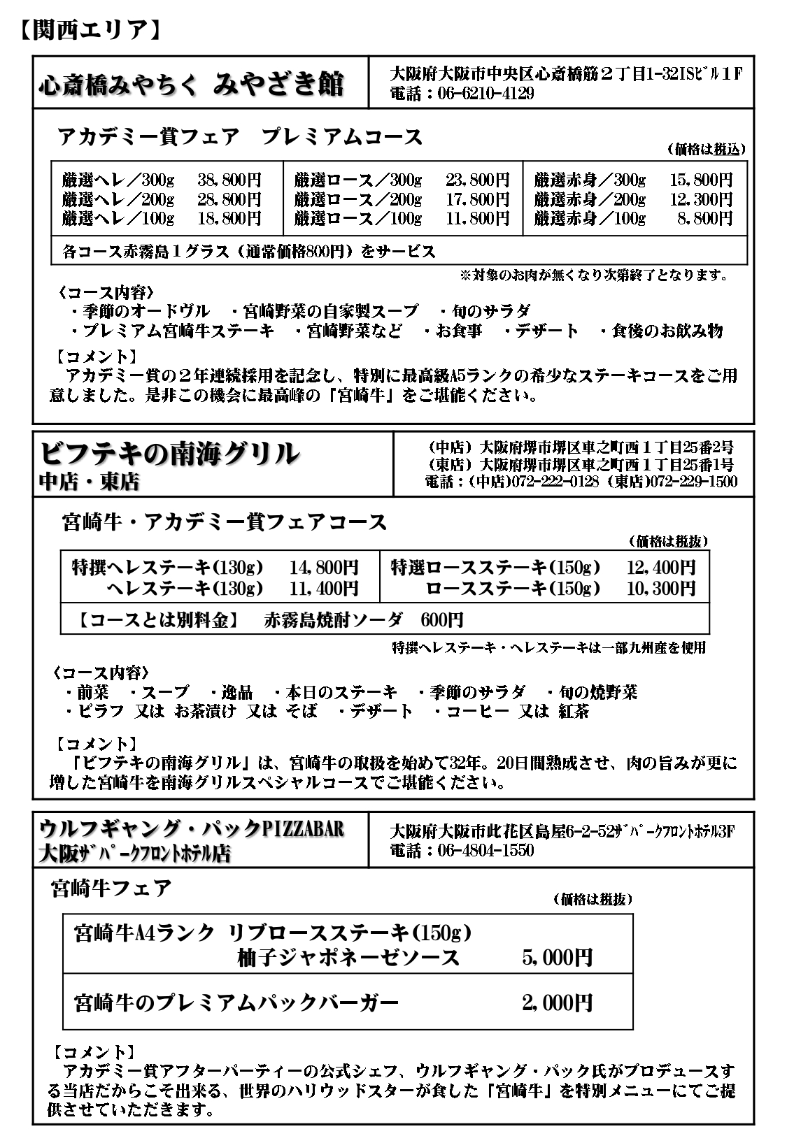 アメリカ・アカデミー賞授賞式アフターパーティー(ガバナーズ・ボール)への宮崎牛の2 年連続採用を受け、関東、関西、福岡、宮崎市のレストランで、宮崎牛フェアを開催します。