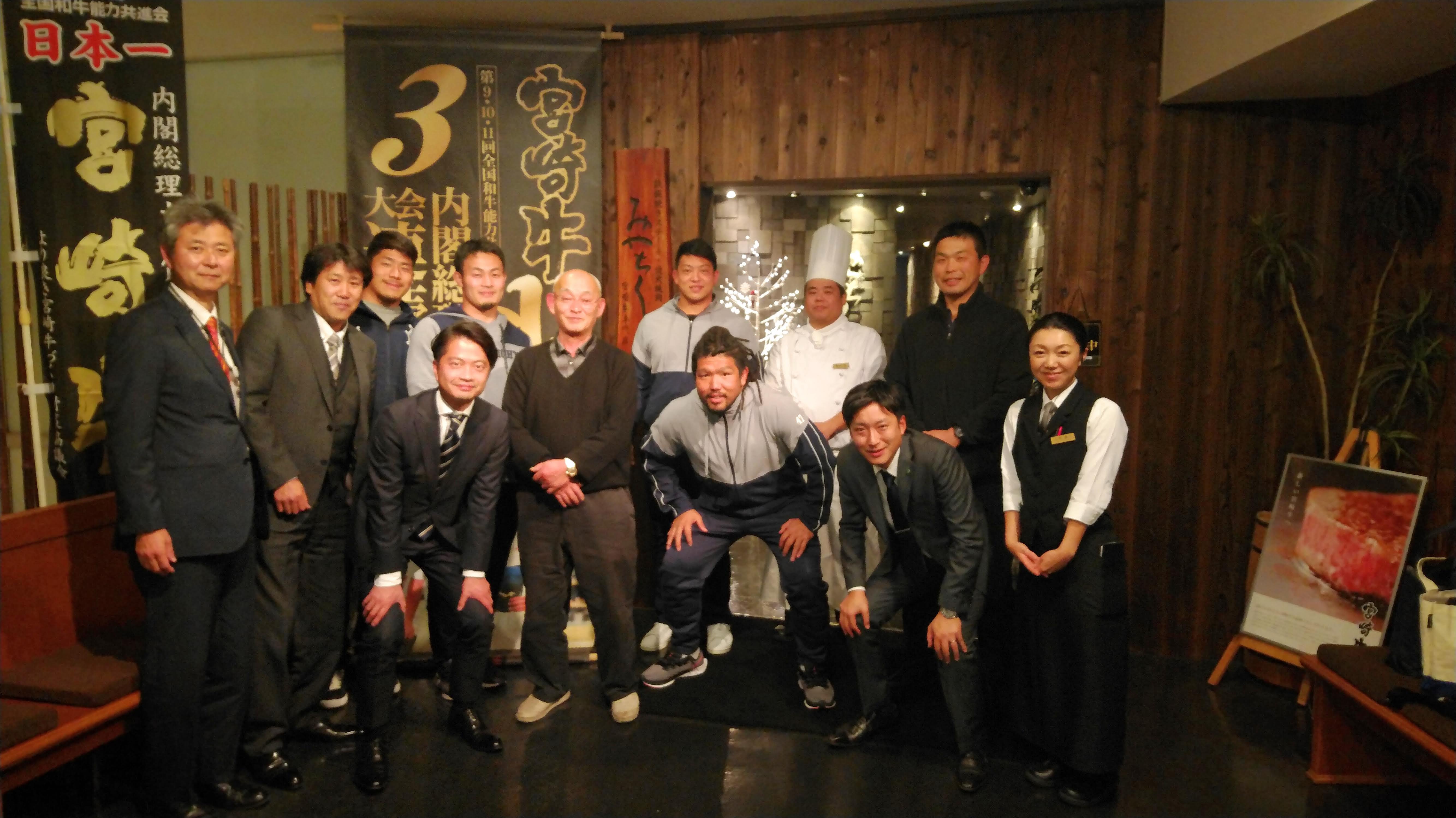 ラグビーワールドカップ2019日本大会においては日本代表が大会初のベスト8を果たし日本だけでなく世界中に感動を与えてくださいました。その日本代表選手が多く所属するパナソニックワイルドナイツメンバーが先般宮崎にて合宿をされていました。そこで、宮崎牛を食べてさらに頑張っていただきたい!という思いを込めて大淀河畔みやちく様にて宮崎牛を食べていただきました★関係者の皆さん大変喜ばれておりました~ますます宮崎牛ファンが増えたのではないかと思っております。宮崎牛がたくさんの方のパワーの源とこれからもなれますように★